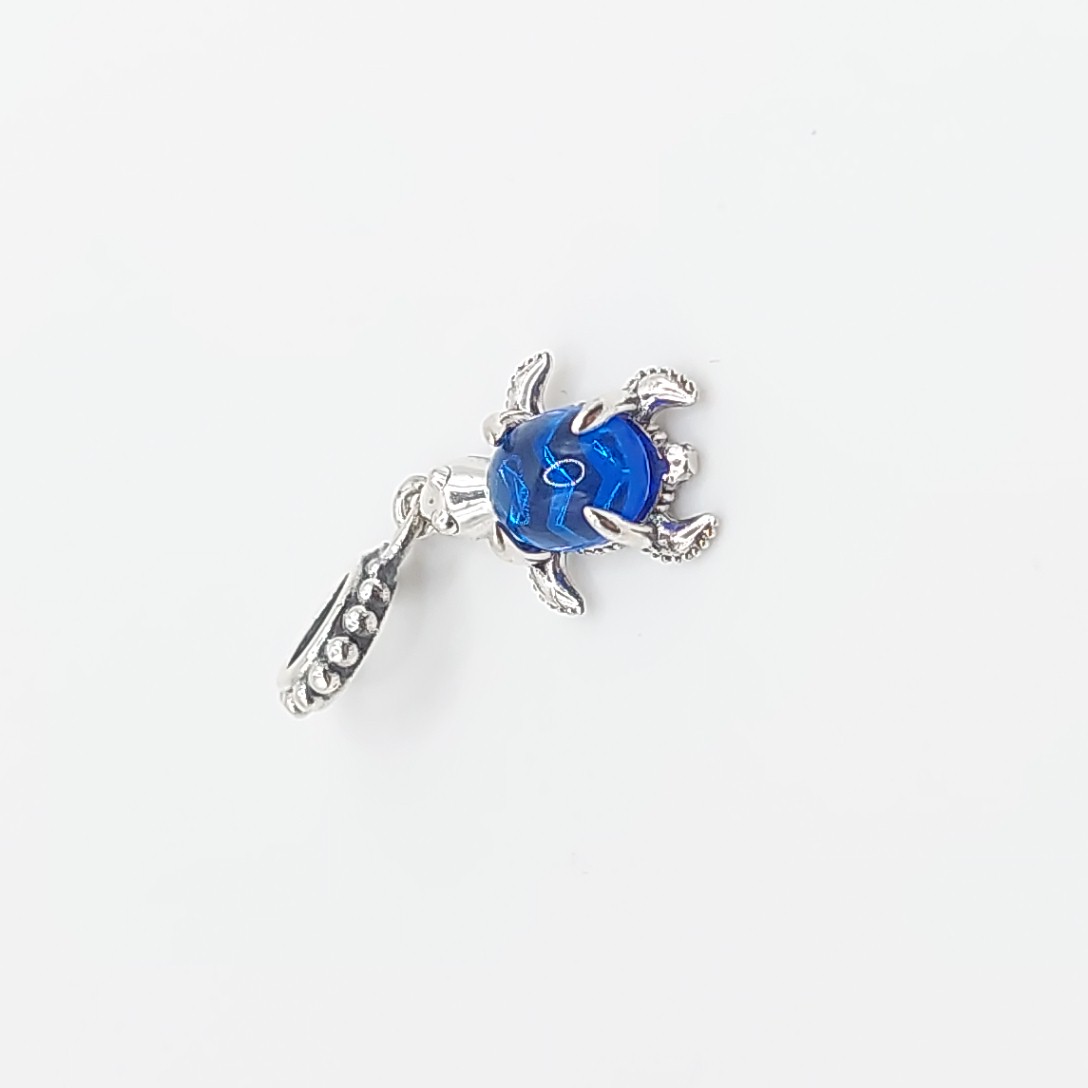 Colgante en plata de ley 925 con forma de tortuga con tonalidad azul
